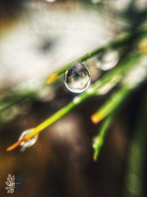 Chilly water droplet dangling from a blade of grass