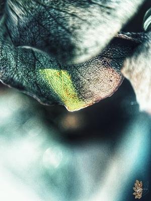 Eucalyptus leaf against a sunbeam