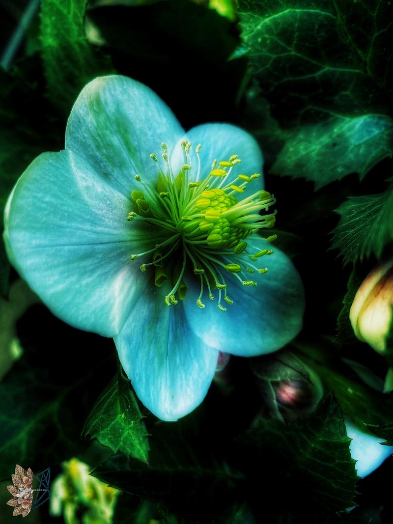 Illuminated hellebore flower