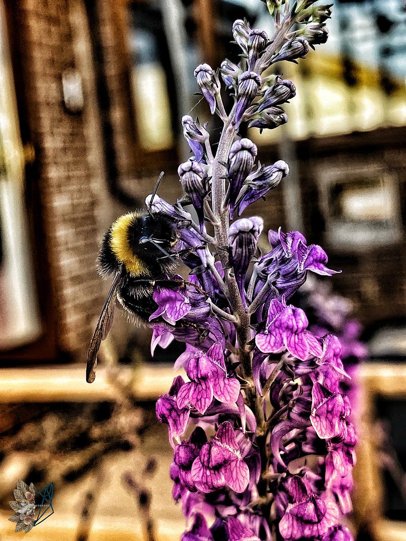 Bumble bee on purple Toadflax flowers